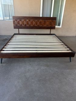 Georgina Solid Wood Platform Bed Frame with Headboard, Mid Century Geometric Pattern$200Westminster, CA