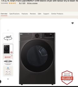 NEW LG 7.4 cu. ft. Smart Front Load ENERGY STAR Electric Dryer with Sensor Dry & Steam Technology$599Gardena, CA