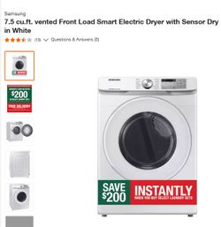 the new SAMSUNG 7.5 cu. ft. Vented Stackable Electric Dryer in White with Sensor Dry$399Gardena, CA