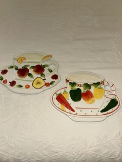 Pair Of Pretty Ceramic Cup & Saucer Plaques For Kitchen Display $16Naples, FL