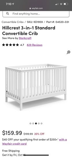 Hillcrest 3-in-1 Standard Convertible Crib$50Corona, CA
