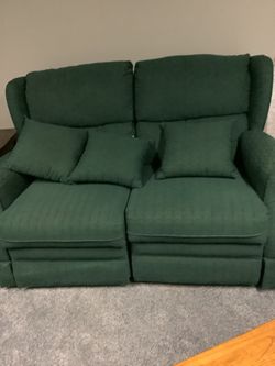 Green Loveseat Which Both Seats Recline With 3 Pillows$60East Brunswick, NJ