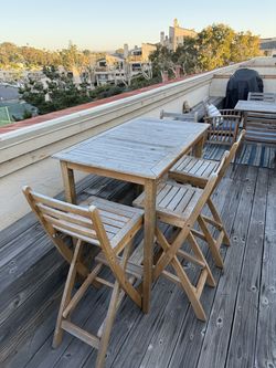 Outdoor Wooden Patio Dining Set - Table + 4 Folding Chairs$199Solana Beach, CA