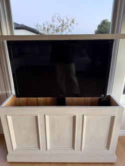 Hidden TV Lift Cabinet Console - 52” - Cream Wood - Includes Samsung TV$300San Diego, California