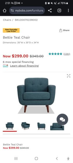 BRAND NEW Bob's Furniture Bettie Teal Chair Accent Chair$150Corona, CA