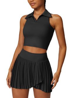Women 2 Piece Tennis Dresses High Waisted Pleated Skirt Sets Seamless Golf Outfits Sleeveless Racerback Padded Crop Top-Medium$25Avondale, AZ