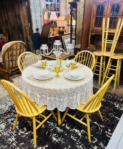 Beautiful Solid Oak Round Pedestal Dining Table & 4 Windsor-Style Spindle Back Chairs H-29”x41” Dia$285Chattanooga, TN