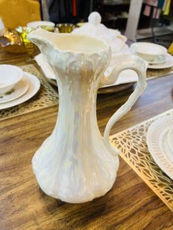 VTG Ornate White Ceramic Pitcher With Leaf Design 11” Tall$15Chattanooga, TN