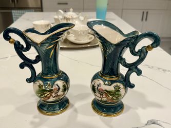 Pair of Vintage Japanese Sterling China Vases β Hand Painted $75Quail Heights, FL