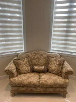 Elegant Damask Loveseat, Carved Wood Details, Includes 3 Pillows$180Redondo Beach, CA