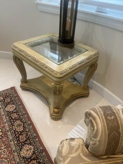 2 Carved Wood End Table with Inset Glass Top, Lower Shelf$200Torrance, CA