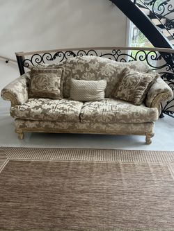 Traditional Vintage Damask Sofa, carved wood base, includes pillows$200Redondo Beach, CA