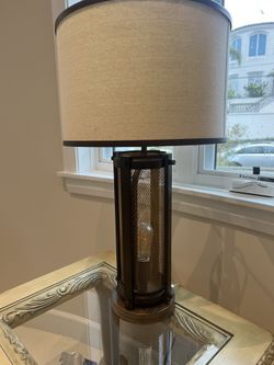 Industrial cage table lamp with linen drum shade, black metal, modern farmhouse$50Redondo Beach, CA