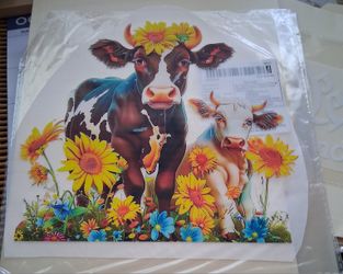 IRON ON TRANSFER DECAL COW SUMMER SPRIND SUNFLOWERS $5Providence, RI