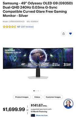 Samsung 49” Odyssey OLED G9 240hz$800Pumpkin Center, CA