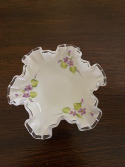 Beautiful Fenton Milk Glass Silver Crest Ruffled And Labeled Hand Painted Bowl $50West Palm Beach, FL