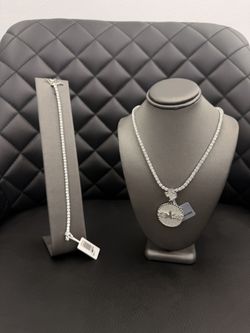 PACKAGE DEAL: 3MM 20” Silver with Moissanite Tennis Chain with charm and Matching Tennis Silver with Moissanite Bracelet $475Dallas, TX