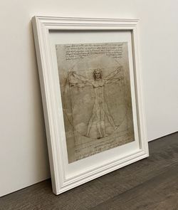 Wall Decor - Reproduction print of Vitruvian Man by Leonardo da Vinci, ca. 1490 • White wooden frame (with glass) in pristine condition $29Pasadena, CA