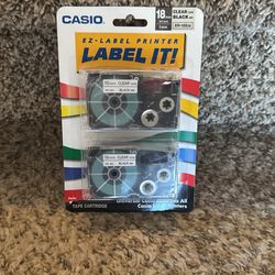New Casio XR18WEB2S Tape Cassettes for KL Label Makers 18mm X 26ft Clear Tape Black Ink $20Littleton, CO