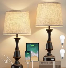 80 Cash Set Of 2 Touch Lamps with Dual USB A Ports, Dimmable Nightstand Lamps for Bedroom, Living Room, Office, Black Lamps$80Quartz Hill, CA