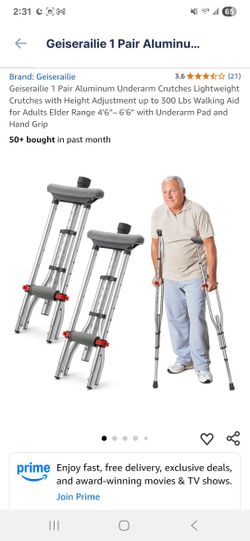 Geiserailie 1 Pair Aluminum Underarm Crutches Lightweight Crutches with Height Adjustment up to 300 Lbs Walking Aid for Adults Elder Range 4'6”– 6'6” $30Brunswick, OH