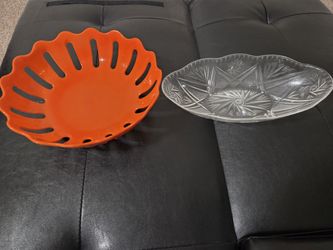 Fruit Bowls / Trays - Large Round Orange color and Transparent Oval$5Houston, TX