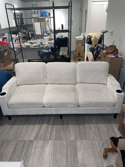 White Beige 3 Seater Cozy Chenille Like Couch Sofa with Cup Holders and Side Pouch$399Hollywood, FL