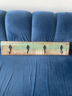 Excellent Condition, Rustic Wood Wall Hanger Rack With Metal Hooks And Turquoise And White Colors$60Dania Beach, FL