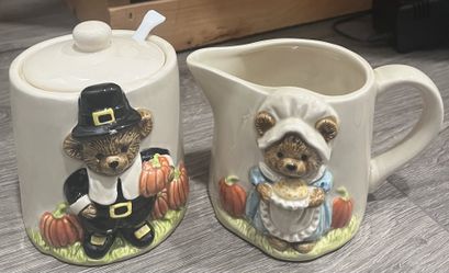 Never Used Otagiri Bear Thanksgiving Ceramic Creamer Sugar Spoon Set Japan Pilgrim$15Arlington Heights, IL