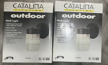 Set 2 Catalina Outdoor Wall Light Galvanized Black Steel Clear Jelly Jar Shade$10Arlington Heights, IL