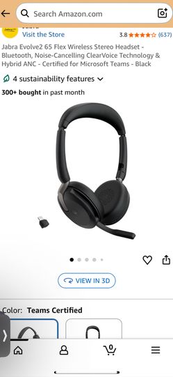 Jabra Evolve2 65 Flex Wireless Stereo Headset - Bluetooth, Noise-Cancelling ClearVoice Technology & Hybrid ANC - Certified for Microsoft Teams - Black$180Monterey Park, CA