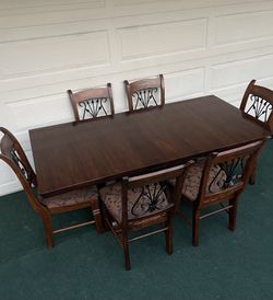 7-PC HEAVY DUTY SOLID WOOD DINING SET (TABLE WITH EXTENSION LEAF AND 6 WOOD WITH IRON PADDED CHAIRS)$290Dallas, TX