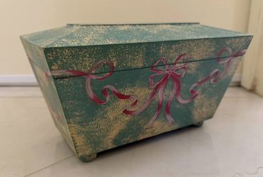 JUST REDUCED! Hand-Painted Decorative Wooden Keepsake Box - Green & Gold with Bow Design$40Deerfield Beach, FL