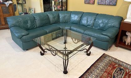 JUST REDUCED! Large Curved Leather Sectional Sofa (Deep Green)$725Boca Raton, FL