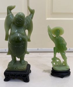 Pair of Green Jade-Style Chinese Figurines on Stands - Buddha & Scholar - Asian Decor$50Boca Raton, FL
