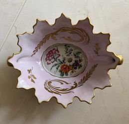 Vintage Pink Porcelain Trinket Dish with Gold Trim & Floral Center - Scalloped Edge Bowl$30Boca Raton, FL