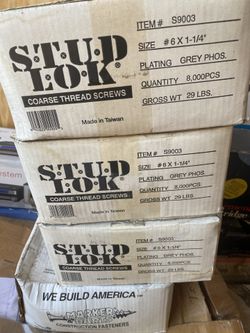 2 Boxes-Stud Lock #6x 1 1/4” #2 Philips Bugle Head Coarse Thread Screws 29lbs Each$60West Covina, CA