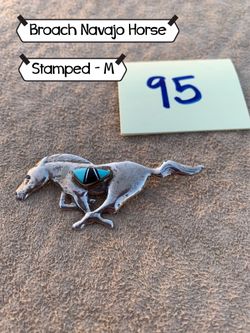 #95 Navajo Horse Broach Sterling Silver Jet Turquoise Stamped: M$50Ramona, CA