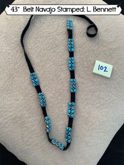 #102 Belt 43” Navajo Sterling Silver Turquoise Leather$350Ramona, CA