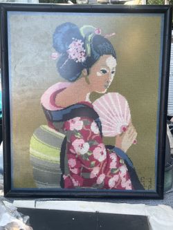 Beautiful Asian Chinoiserie Geisha lady Mid Century Needlepoint Framed,$125Fort Lauderdale, FL