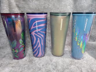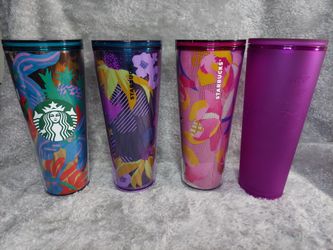 4 Starbucks Tumblers 24 Oz Plastic Various Color And Print No Straws Must Pick Up$20Edinboro, PA
