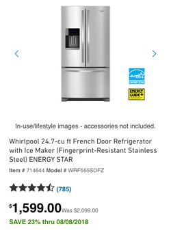 Whirlpool 24.7 cu ft French door refrigerator$850Homestead, FL