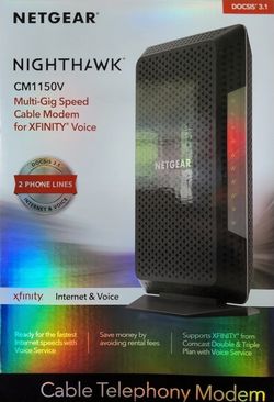 NETGEAR Nighthawk Cable Modem with Voice (CM1150V)$100Tomball, TX