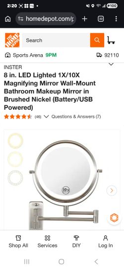 8 in. LED Lighted 1X/10X Magnifying Mirror Wall-Mount Bathroom Makeup Mirror in Brushed Nickel (Battery/USB Powered)$60San Diego, CA