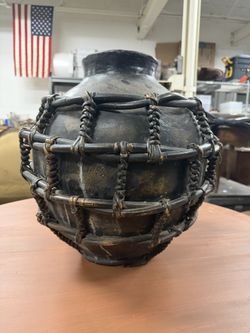 Vintage Black Wicker Rattan Stoneware Ceramic Boho / Tribal Vessel Floor Vase & Home Decor & Luxury Interior Design β Antique MCM Modern$95Farmington, MI
