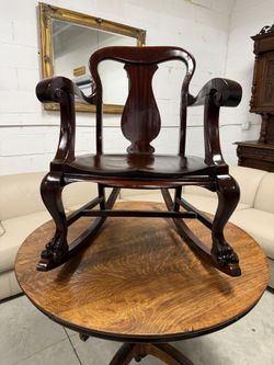 Antique American Mahogany Ball & Claw Colonial Revival / Chippendale Style Rocking Chair / Accent Chair 🚚 Luxury Estate Furniture $350Farmington Hills, MI