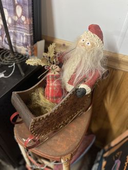 Resin Paper Mache Santa With Aged Soft Leather Sleigh$24Janesville, WI