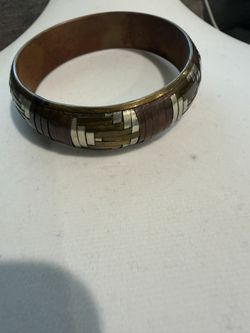 Vintage Brass Copper Silver Tone Woven Metal Inlay Chunky Boho Bangle Bracelet $10Lake Worth, FL