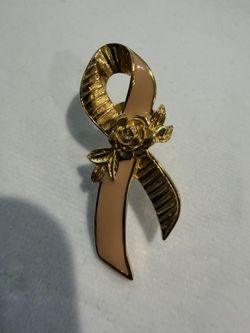 Vintage Avon Gold Tone Pink Ribbon Rose Breast Cancer Awareness Brooch Pin$8Lake Worth, FL