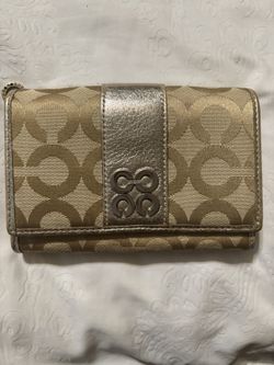 Coach Signature C Gold Metallic Khaki Canvas Snap Bifold Wallet Clutch$35Temple Terr, FL